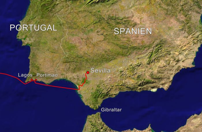 Um zum ursprünglichen Ziel der Reise nach Griechenland zu gelangen waren es immerhin noch ca. 2000 Meilen. Spätestens Mitte August sollte das Boot am Trockenen und ich wieder zu Hause in Wien sein. Da allerdings die Windprognosen für die Straße von Gibraltar und das Seegebiet an der spanischen Südküste mittelfristig vorwiegend Ostwinde voraussagten, entschloss ich mich kurzerhand, das Boot irgendwo "hier in der Gegend" überwintern zu lassen. So habe ich jetzt noch einige Wochen Zeit, die nach einen Jahr auf dem Atlantik notwendigen Service- und Reparaturarbeiten in Ruhe zu erledigen und dann im nächsten Sommer gemütlich und stressfrei durch das Mittelmeer zu segeln. Das allerdings nur, sollte bis dahin das Boot noch nicht verkauft sein. Denn wie schon vor der Reise geplant, steht die Anima IV nun - umfangreich ausgerüstet und in einwandfreiem Zustand - zum Verkauf bereit ( Informationen dazu hier...). Nach einigen Anfragen fiel die Entscheidung zugunsten der Marina Gelves, nahe Sevilla. Dieser Ort wurde mir auch von anderen Seglern empfohlen, liegt ca. 50 Meilen am Guadalquivir flussaufwärts und nur 15 Busminuten von Sevilla entfernt. Die Fahrt den Fluss hinauf war interessant: Anfangs ging es ca. zwei Stunden lang mit Gegenströmung kaum voran, dann kippte die Tide und ich schaffte die Strecke mit teilweise über sieben Knoten und kam rechtzeitig vor Einbruch der Dunkelheit - und gleichzeitig mit dem Beginn einer Hitzewelle - in Gelves an. Die 45°C in den Tagen darauf waren auch mitentscheidend für den Entschluss, das Boot an Land zu stellen, dann nach Wien zu fliegen und im August für 10 Tage wieder hier an Bord in Ruhe einige Dinge zu erledigen (u.a. Ausbau und Service der Ankerwinsch, Austausch und Erneuerung sämtlicher Schläuche und Ventile des WCs, Erneuerung des Wellenlagers, Lackieren von Pinne, Bugspriet, Gaffel, Mast, Einbau eines neuen Batterieladegerätes, etc.). Somit ist das nun bis auf weiteres der letzte Logbucheintrag, da diese große Reise zwar etwas weiter westlich und ein paar Wochen früher als geplant, aber doch erfolgreich nach ziemlich genau zwölf Monaten und über 12000 Seemeilen zu Ende geht. Das kleine Schiff hat sich bestens bewährt und erregte wie schon erwähnt in jedem Hafen und jeder Bucht wegen Design, Stil und geringer Größe die Aufmerksamkeit vieler Segler. Alle, denen man erzählte, dass man mit einem 25-Fuß (7,6m) Boot so eine Reise macht, sagten: "Was?! Mit so einem kleinen Boot!" - Alle, die das Schiff aus der Nähe sahen oder besichtigten, sagten: "Was?! Das ist nur 25 Fuß lang?" - Und diese Reaktionen zeigten einerseits, dass es heutzutage, wo die Yachten immer größer (40-45 Fuß sind Standard) werden, wohl nicht ganz alltäglich ist, mit einem kleinen Schiff auf große Fahrt zu gehen, andererseits, dass gerade dieser Schiffstyp sich trotz seiner bescheidenen Abmessungen vergleichsweise hervorragend für das Langzeit- bzw. Hochseesegeln eignet. So bin ich - falls das möglich ist - der Anima IV dankbar, dass ich mit ihr sicher und problemlos diese große Runde segeln konnte. Jedenfalls an dieser Stelle auch ein herzlicher Dank an alle Mitsegler, die sich das trotz der permanenten Enge und Schaukelei angetan und mich unterstützt haben. Und auch ein Dankeschön an die Besucher und Leser dieser Webseite bzw. des Logbuches, die diese Reise mitverfolgt und die Anima und mich - in Gedanken und auch immer wieder mit netten Zeilen - begleitet haben! Martin Hammer, Wien, 25. Juli 2017 |