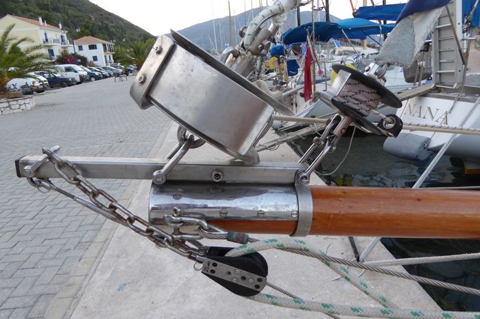 Bugspriet montiert. Die Rollanlage für den großen Klüver funktioniert einwandfrei.