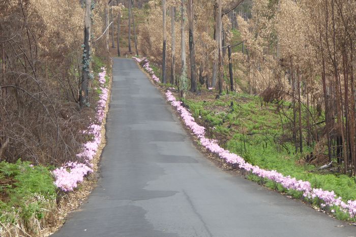 Pionierpflanzen am Straßenrand nach den Waldbränden