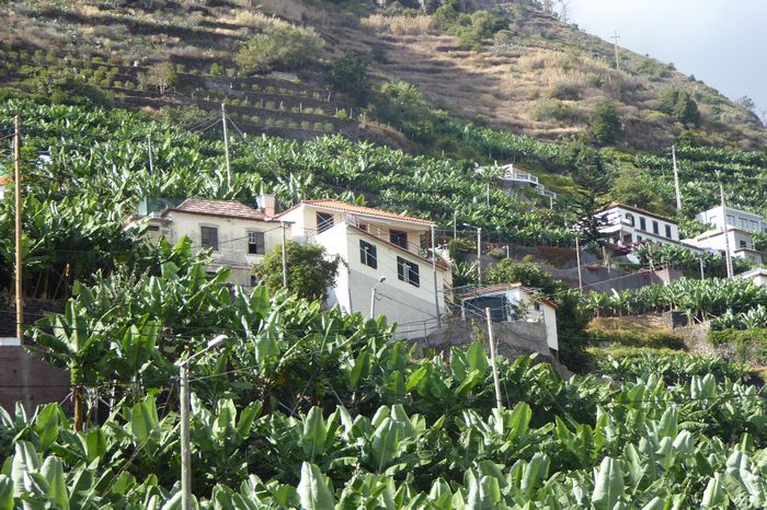 Bananenplantagen zwischen den Wohnhäusern im Süden der Insel