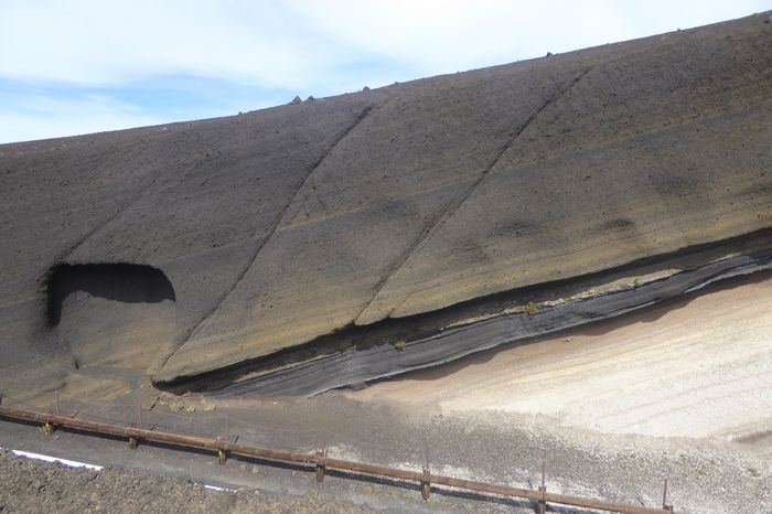 Schichten von Vulkanasche am Hang des Teide