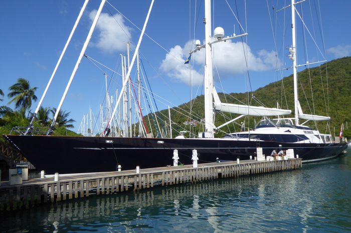 "Wiedersehen" mit der 52m langen Superyacht in Marigot Bay, St. Lucia, nachdem wir einander im Pazifik 2009 mehrmals begegnet waren.